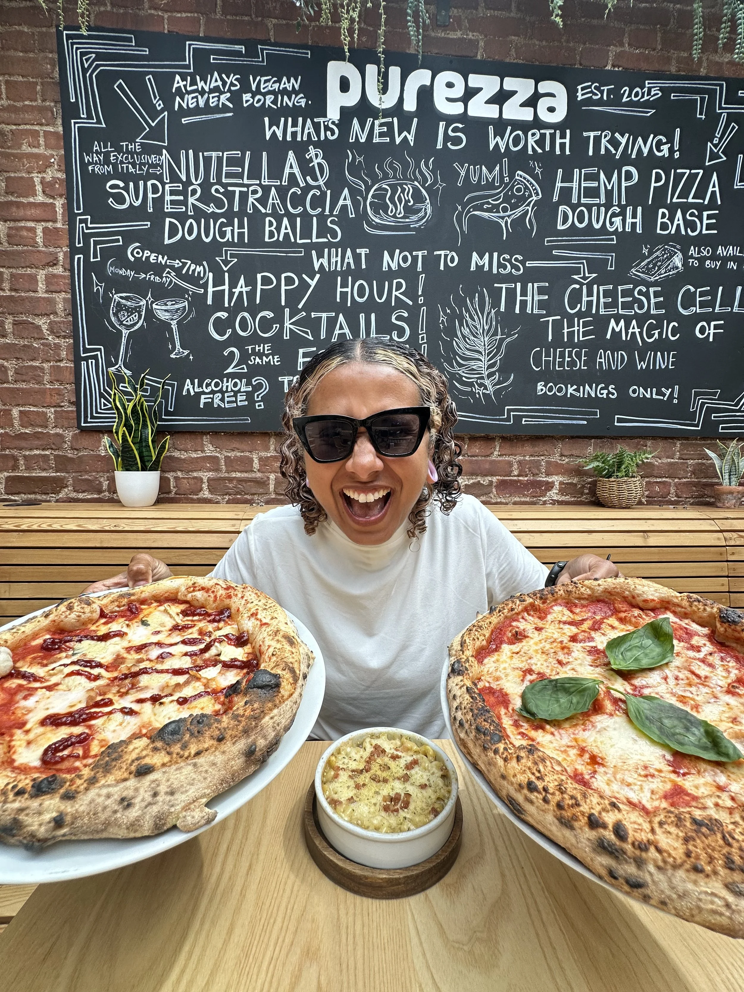 vegan pizzas using Casadei mozzarella (created by me!) at Purezza restaurant in Camden Town